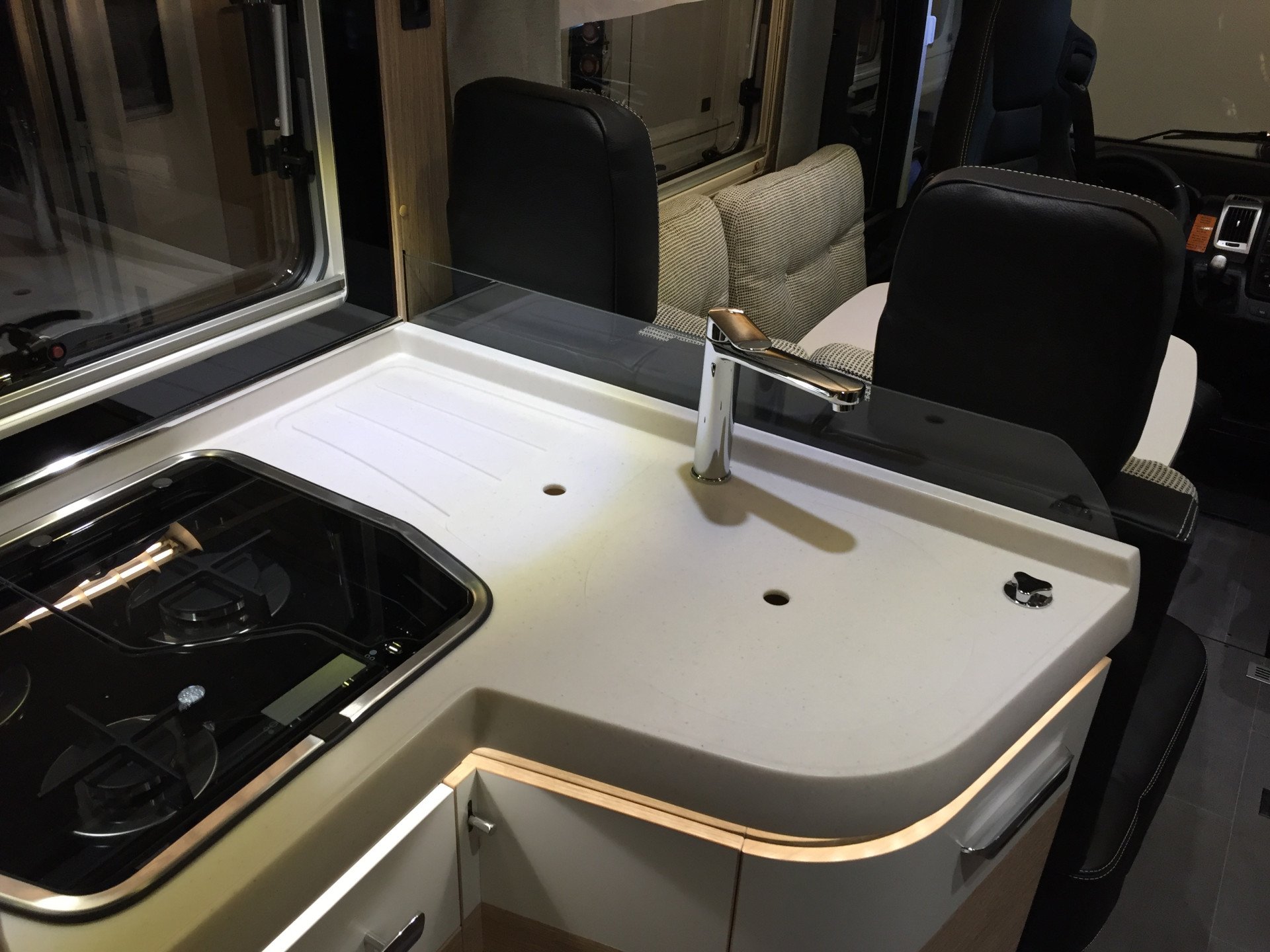 Keuken- en wastafelblad van hoogwaardig massief kunststof